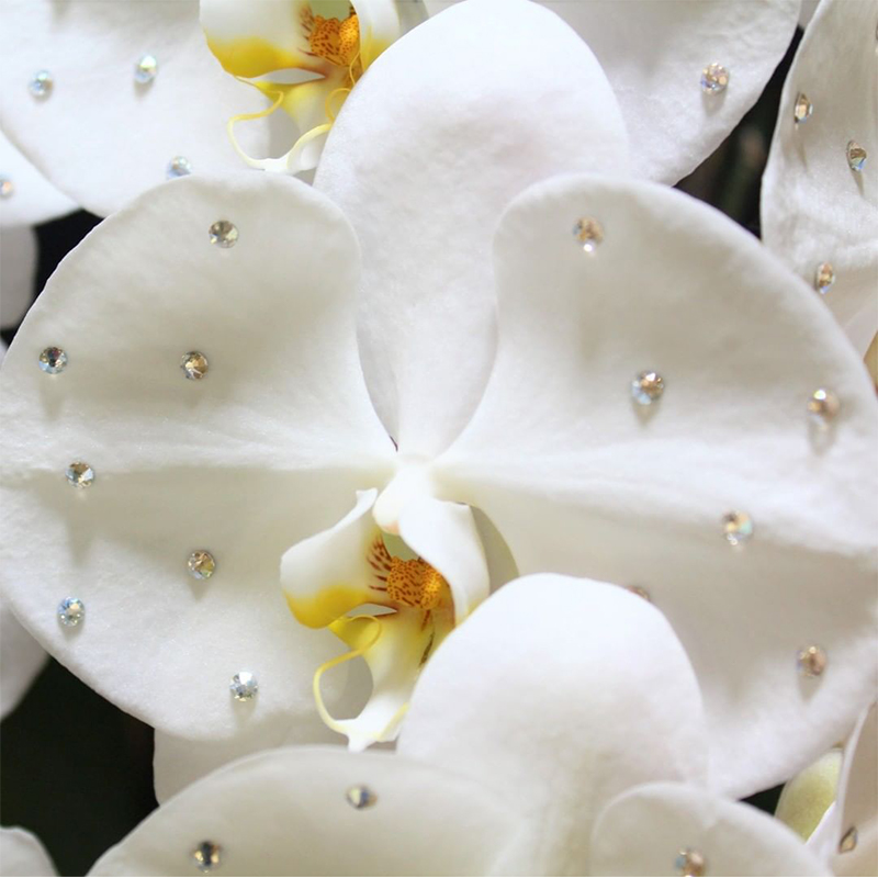 胡蝶蘭の純白を惹きたてるカラーのスワロフスキーⓇ・クリスタルを使用。